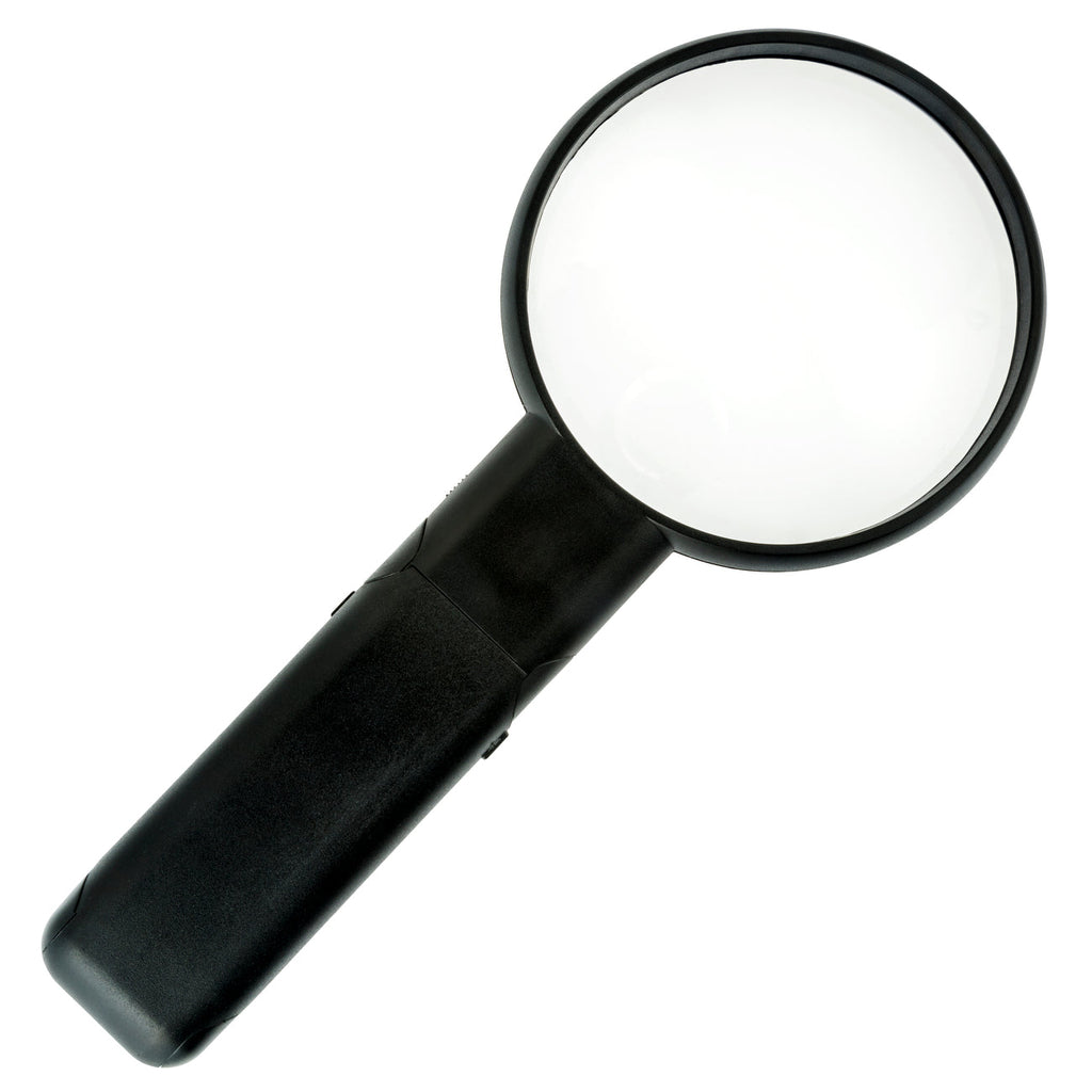 The Lighted Hands-Free Magnifier is designed for detailed reading of books, newspapers, and magazines. Featuring a high-quality plastic housing and a 3.5" optical-grade acrylic lens, this magnifier offers 2X magnification with a 4X bubble, enhancing font sizes and making small details clearer. Its integrated folding stand and lens enable hands-free use on any flat surface, while its portable design fits conveniently in backpacks, purses, or briefcases.