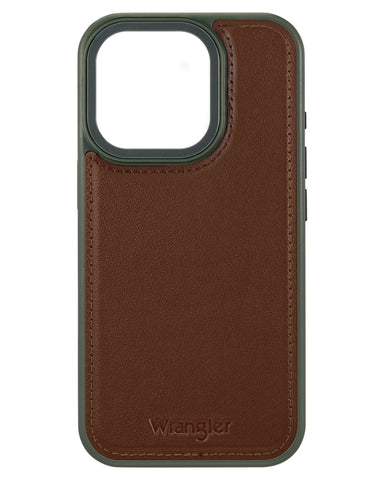 Crafted from genuine leather, this Wrangler iPhone case embodies the rugged spirit of the American West. The genuine brown leather exterior is designed for the modern cowboy. The military green painted edge is soft to...