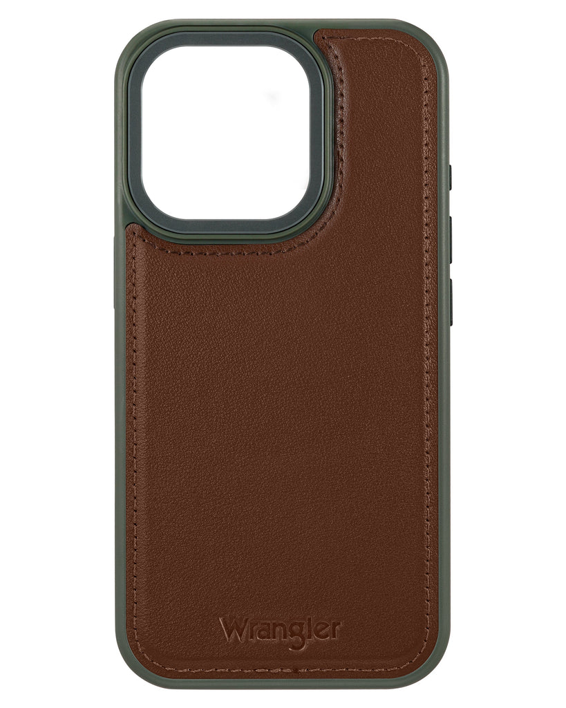 Crafted from genuine leather, this Wrangler iPhone case embodies the rugged spirit of the American West. The genuine brown leather exterior is designed for the modern cowboy. The military green painted edge is soft to the touch, creating a phone case that provides exceptional protection while showcasing Wrangler’s legacy of quality and durability. With a perfect blend of style and strength, this case is made for those who live boldly.