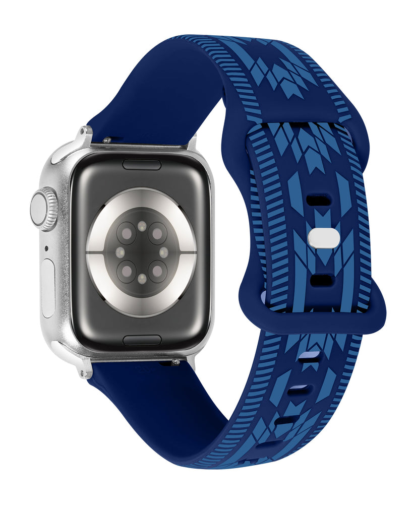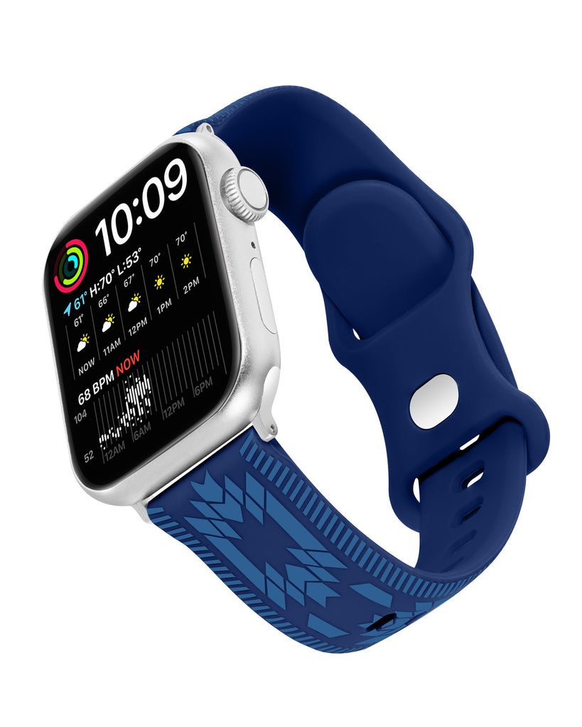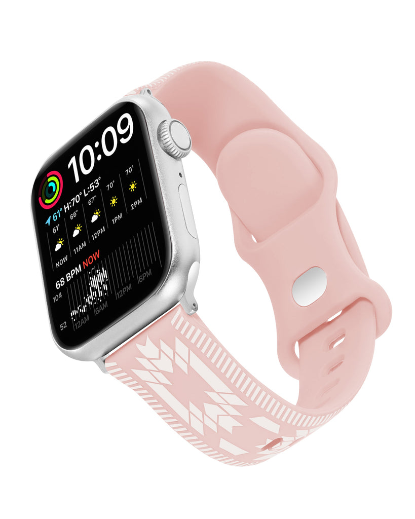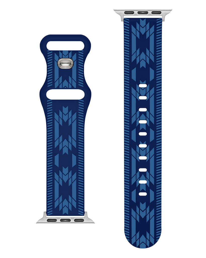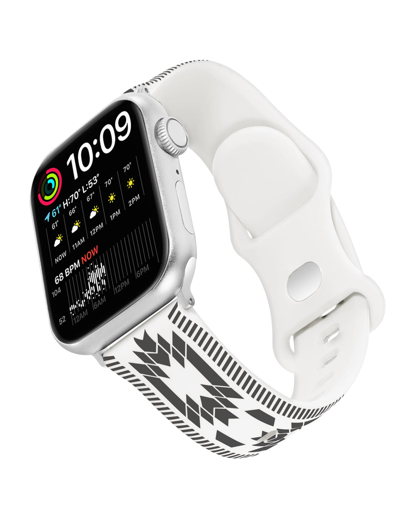 Enhance your Apple Watch with a rugged Western flair with Wrangler’s two-tone brown silicone, cream and brown silicone, two-tone blue silicone, pink silicone, or light pink silicone Aztec pattern band. Inspired by classic Western design, the intricate geometric details create a distinctive look while ensuring the flexibility and comfort that silicone offers. This band combines durability with striking style and is universally compatible with all Apple Watch devices, making it the perfect companion for everyday adventures.