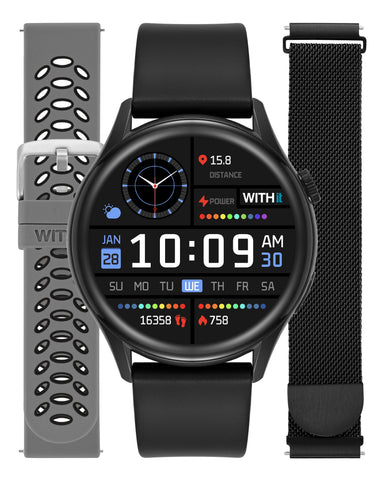 The Deca Smartwatch Bundle combines the innovative WITHit Deca Smartwatch with the sophisticated 22mm Universal Mesh Black Band and the versatile Silicone Sport Band for unmatched versatility. Stay connected and on top of your health...