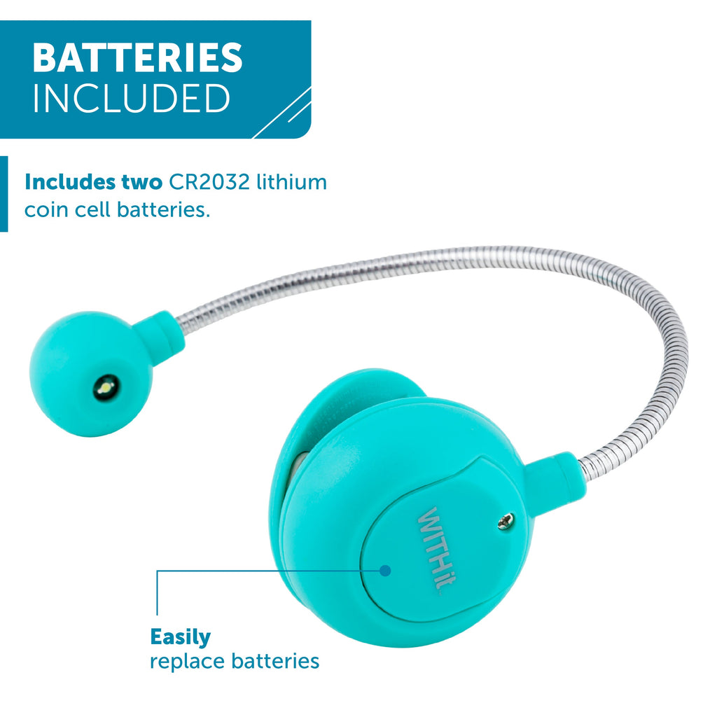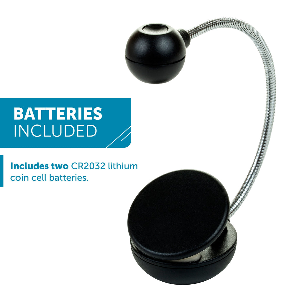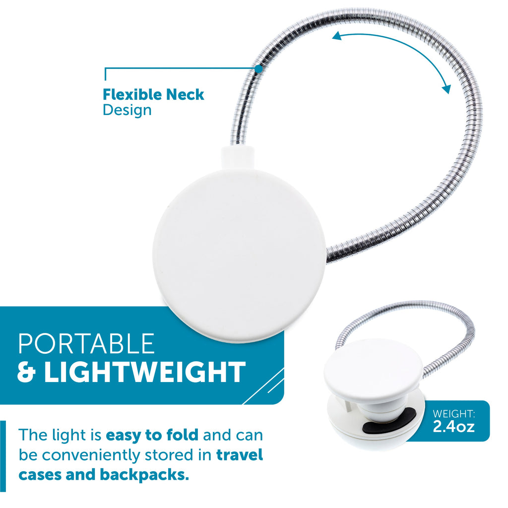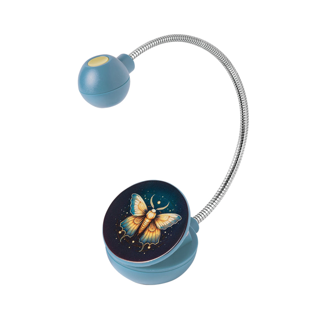 The disc-shaped reading light makes reading in dimly lit areas effortless. Ideal for students, professionals, or anyone who enjoys reading paperback or hardback books, this portable light clips securely to eBooks, Kindles, and physical books. The flexible neck and ergonomic design reduce glare, making it comfortable for extended reading sessions. Available in various colors and patterns, it's powered by CR2032 lithium coin cell batteries, ensuring durability and convenience wherever you go.