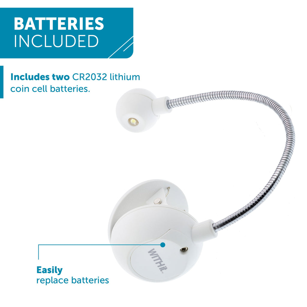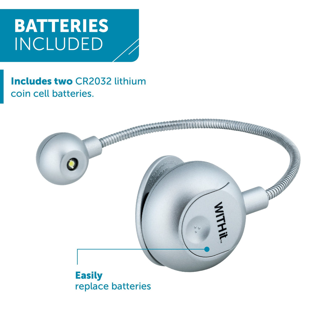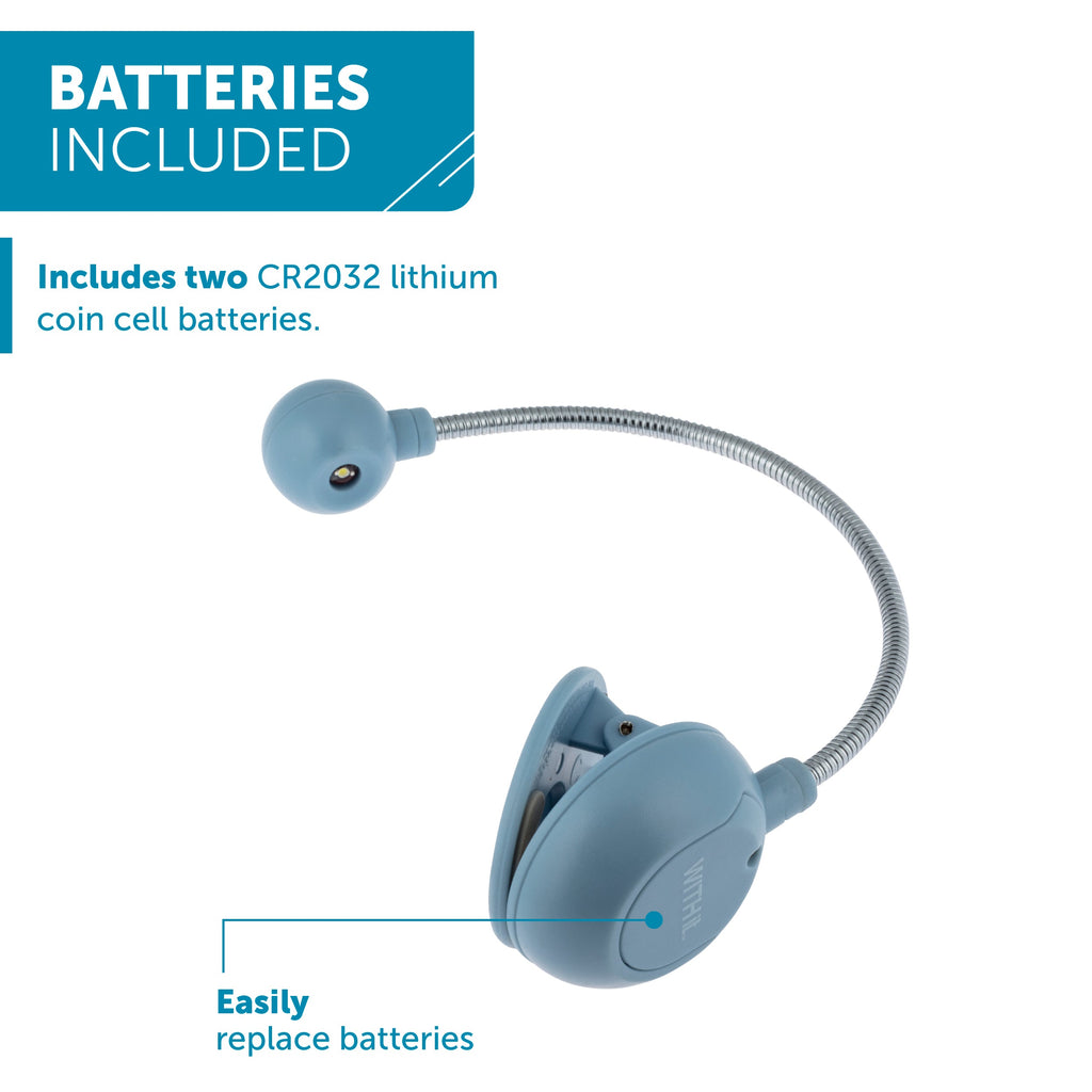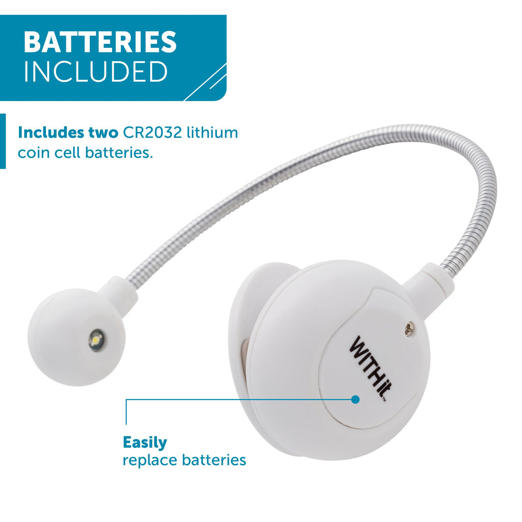 The disc-shaped reading light makes reading in dimly lit areas effortless. Ideal for students, professionals, or anyone who enjoys reading paperback or hardback books, this portable light clips securely to eBooks, Kindles, and physical books. The flexible neck and ergonomic design reduce glare, making it comfortable for extended reading sessions. Available in various colors and patterns, it's powered by CR2032 lithium coin cell batteries, ensuring durability and convenience wherever you go.