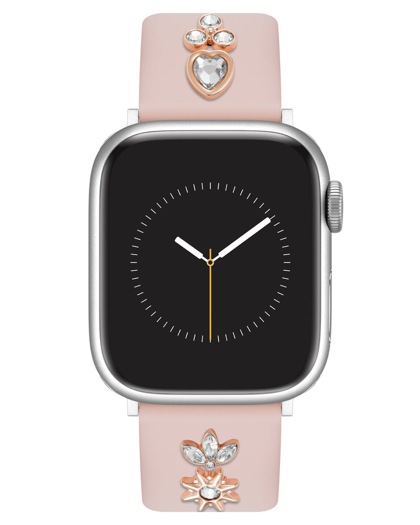Soft sparkle, big impact. These rose gold charms—crafted with ionic plated rose gold, a polished finish, and set with crystals—layer your band with blush tones and delicate shine. Timeless glam with a gentle luxe vibe.