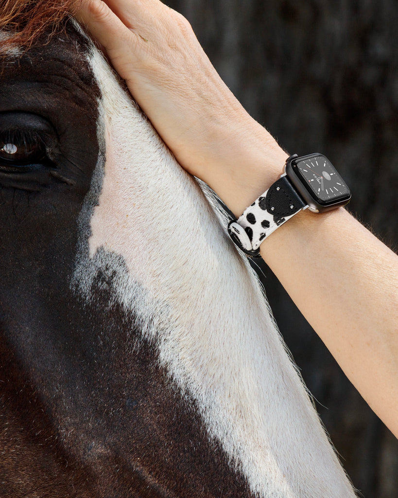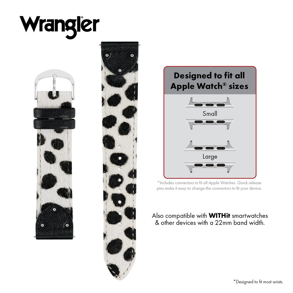 The Calf Hair Studded Band from Wrangler adds a bold, rugged edge to your Apple Watch. Crafted from genuine calf hair and adorned with stylish stud accents, this band embodies Wrangler’s Western heritage while offering a durable, high-quality design. The natural calf hair results in a unique band, making each piece truly one-of-a-kind. Universally compatible with all Apple Watch devices, it’s built to endure the test of time.